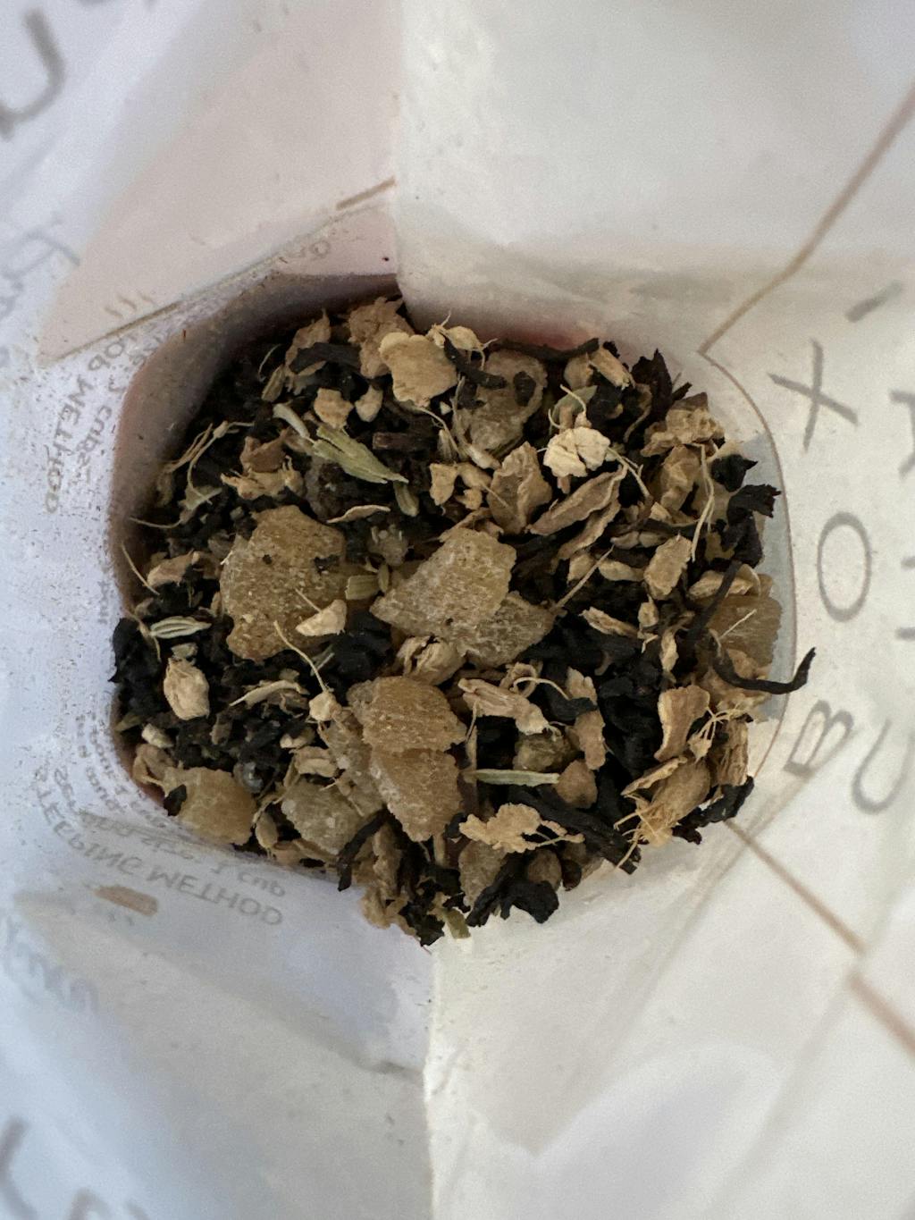 Black tea, candied ginger, fennel, and cardamom
